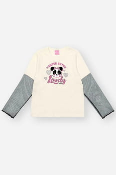 CONJUNTO INFANTIL MENINA CINTI BLUSA PANDA E SHORT COURINO PRETO - 12390